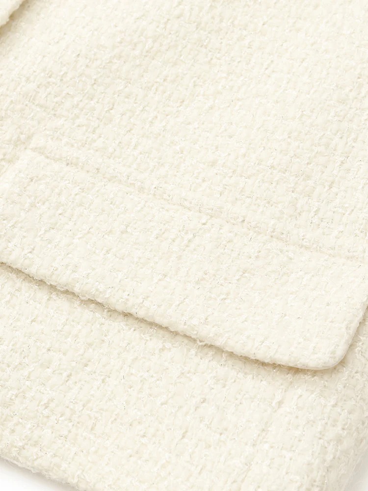 This jacket is made of wool blend fabric, providing comfort and warmth, and represents the classic tweed style. With an H-shaped cut, it offers a straight silhouette for different body types. It features a sophisticated stand-up collar, elevating the design with an air of elegance and formality. It can be paired with Eco-Friendly Leather A-Line Women Shorts or other pants, offering endless possibilities for outfits in different seasons.