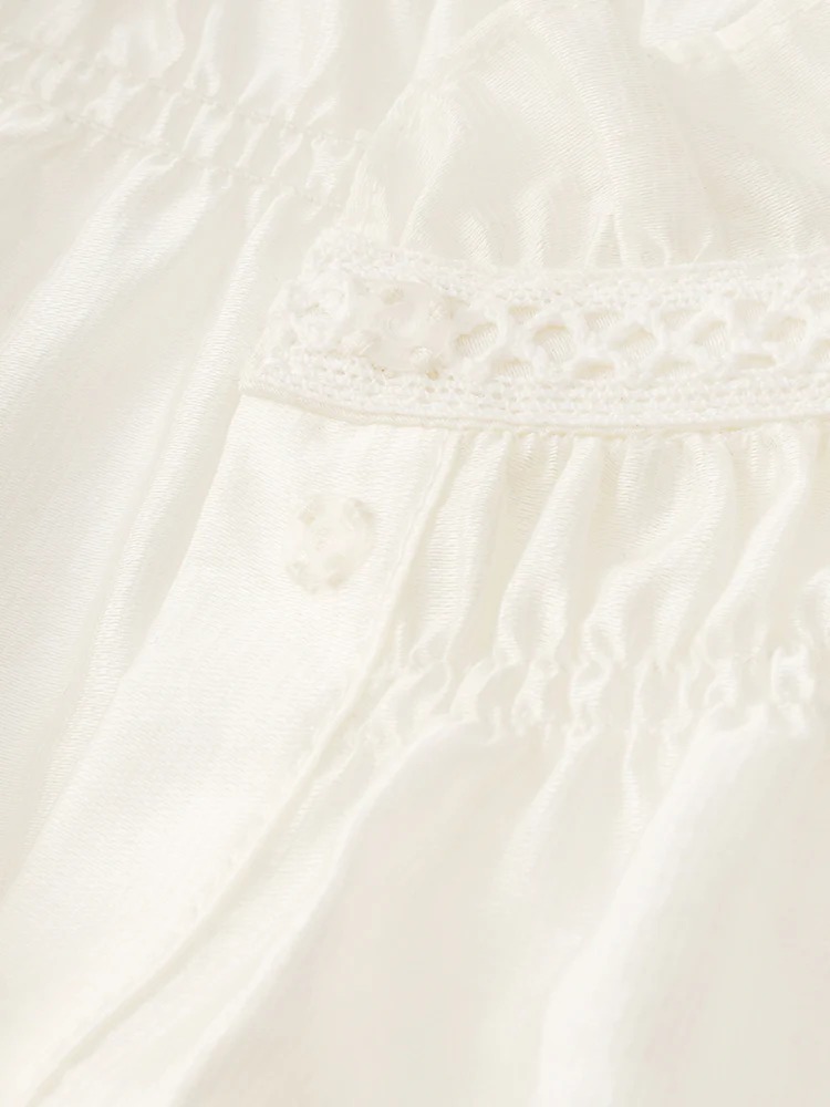 This Tencel blouse features a romantic ruffle neck and loose fit, offering a combination of comfort and elegance. The soft, breathable Tencel fabric enhances the airy, graceful drape of the blouse, making it perfect for both casual and formal occasions. The delicate ruffles add a touch of sophistication, embodying a feminine allure that complements any outfit.