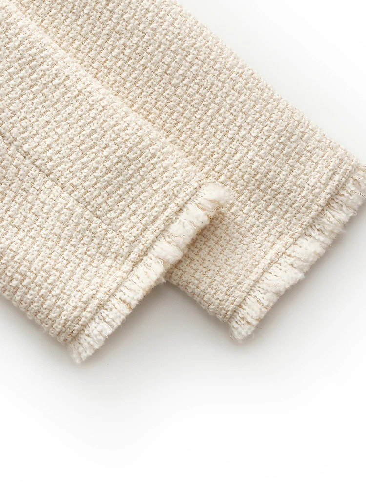 This wool-blend jacket offers warmth and comfort with a unique textured design that exudes elegance and personality. The cropped fit elongates the figure, making you look taller and slimmer. Decorative pockets add dimension, while metallic buttons provide a refined touch. Its versatile design pairs effortlessly with jeans or skirts, making it perfect for any occasion or season.